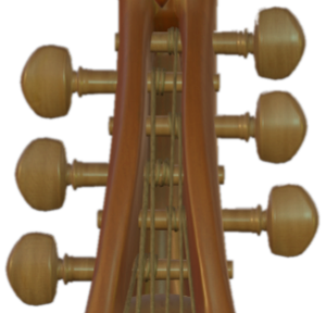 The viola da gamba is played with a bow. The bow consists of a convex wooden stick strung with horsehair. It is held with an underhand grip, drawing the horsehair across the strings. The sound is very soft and smooth due to the grip, the convex shape of the bow as well as the gut strings.
